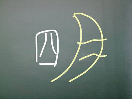 請參見圖,其實它是一個窗戶的窗簾「㘟」,窗戶的窗簾「㘟」在這裡,以前的「明」是這樣寫的,有雲彩,而月亮的光從這個窗戶照進去,這就是「明」的古字。